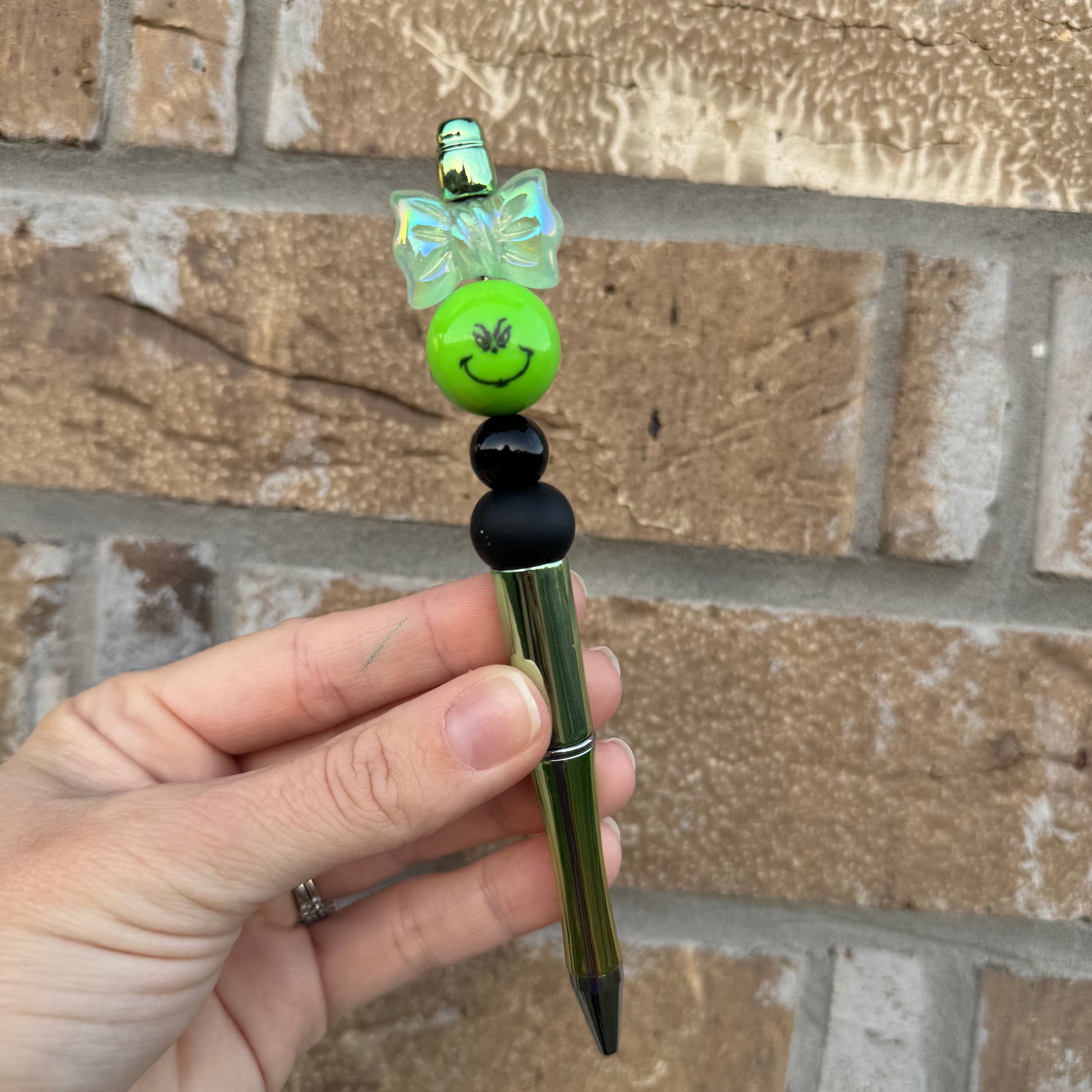 Green Guy Bow Beaded Pen